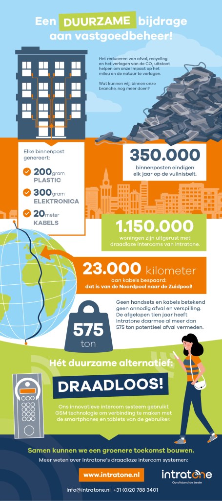 Deze infographic is in opdracht voor Intratone. Door te kiezen voor het draadloze systeem van Intratone wordt er veel potentieel een onnodig afval vermeden!